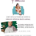 ASBÜ Klinik Psikoloji Araştırma ve Uygulama Merkezi (ASBÜ KPAUM) Webinar Serisinin 6. programında; 26 Ekim Çarşamba günü saat 21.00’de Klinik Psikolog Sevinç Ayşe Kaya “Erken Dönem Bağlanma” başlıklı konuşmasını gerçekleştirdi. Bağlantıdan izleyebilirsiniz: https://www.youtube.com/watch?v=QQAuJqKQoNQ